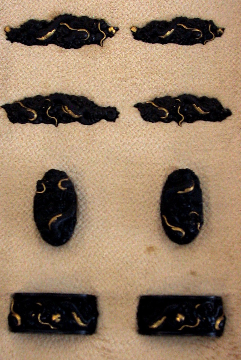 は水戸金工の大小揃い金具(這龍図の縁頭、目貫、大小二所)、太刀(善定兼吉)、刀(備