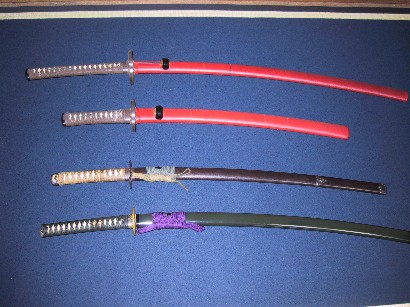 大小拵 豪装な琴糸巻朱塗鞘造りで武士が腰に差した物とは考えられず、奉納品と思われる。