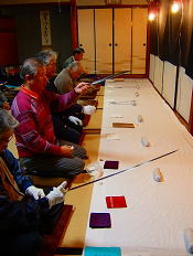 参加者は、13名。個人宅において行われたので、これだけの人数が集まりますと、大賑わいです!しかも、13時から開催されたのですが、後から来る人来る人が、次々に名刀をお持ちになるので、嬉しい悲鳴をあげました。