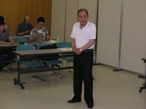 挨拶する岡山県 白神支部長 鑑賞する会員