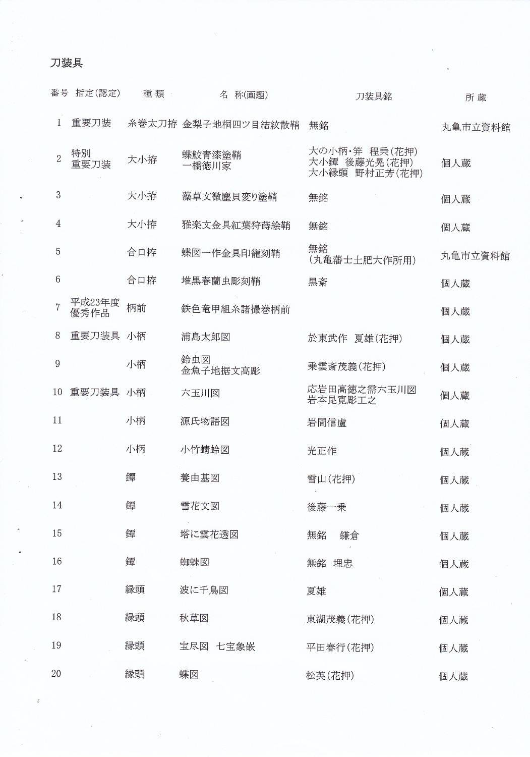 9, 関連行事 日本美術刀剣保存協会四国讃岐支部による鑑賞会