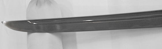 身幅が広く、元先の幅差があまり開かず、大きく延びた鋒に結び、反りのやや高い、南北朝期の太刀姿で、地鉄は、小板目つむも、無地風となり、地沸よくつき、地景細かに入り、乱れ映り立つ、刃は角張る互の目を基調に、尖り刃・片落ち互の目を交え、足よく入り、総体に逆がかり、匂い勝ちに小沸つく、帽子は乱れ込み、先鋭く尖って返る、備前兼光写し。