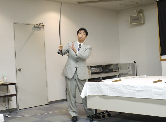 初めに初心者講座として、日本刀製作(日本刀の心と技)のビデオ鑑賞となり、一本の日本刀が完成するまでには、良い材料、経験が必要な各工程の技、体力及び忍耐力などが如何に要求されるか、少ですが理解できたと思っています。