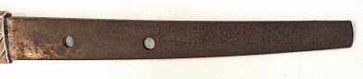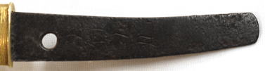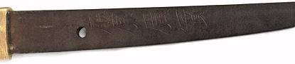 四号刀は身幅寸法共に尋常ですが、鎌倉後期の作としては珍しく僅かに反りが認められる姿の短刀で、地鉄は板目に杢交じり、刃寄り少しく綾杉風