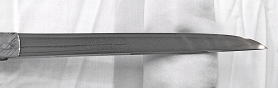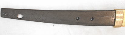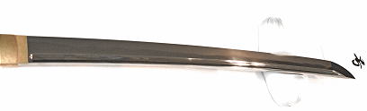 四号刀は鎬造、庵棟、身幅細め、腰元の踏張りが全く認められないことから、大きく磨り上がっていて、鍛えは小板目肌よくつみ、地沸微塵につき、乱れ映り鮮明に立つ。刃文は直刃基調に浅くのたれごろをおび、小互の目・小丁子など交じり、幾分小模様に乱れ、小足入り、匂口ややしまり、小沸僅かにつき、匂口冴える、備前刀。
