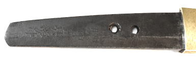 二号刀は身幅広く大鋒先で、元に踏張りがつく頑健な姿の新刀脇差。鍛えは地景がよく働いて地沸がよくつきテコ鉄風の大肌が見られる。刃文は直ぐに焼き出して、小のたれに互の目が交じり、太い足が入り、匂い深く小沸がよくつき、匂い口が明るく冴え、帽子は横手上で焼きこんで直ぐに小丸に返るという典型的な作風の長曽祢虎徹。