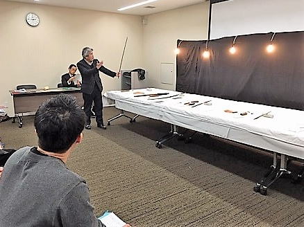 最初に午前11時から、今回の初心者講座は、地刃の働きを顕著に現し、地景や金筋、湯走りなどの働きと、地刃の明るさで伝法を確立した相州伝の勉強と、1月号「刀剣美術」の誌上鑑定刀考察を12時まで実施。