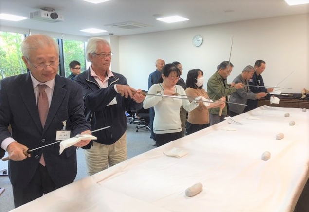 今回は入会希望者男女各一名の体験参加があり、丹生理事が日本刀の取り扱い講習等を別の場所で実施。