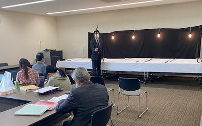 午前の総会に続いて、午後の鑑賞会では、協会より石井彰講師が名刀5口を用意してくださいました。