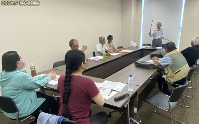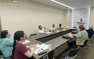午前中、初心者講座として「日本刀入門」の資料をもとに支部会員の丹生寿男氏が刀の魅力、 美術品・文化財としての価値について話された後、刀の姿の変遷、鍛え肌の違い、様々な刃文の特徴、外装など刀の基礎を学びました。 続いて、刀剣美術6月号の誌上鑑定の解説をして頂きました。 ヒントに書かれている文言の解説から、その刀工ならではの特徴などを詳しく教えていただきました。