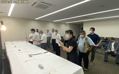 午後からは、岡山県支部の方々と鑑賞会を行いました。刀は5振りの鑑定等と1振りの鑑賞刀を用意してくださいました。