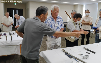令和7年7月20日(日)、痛いほどの晴天の中、大西・アオイ記念館にて初心者講座と刀剣鑑賞会を開催いたしました。 四国讃岐支部会員12名、午後から岡山県支部会員7名、一般参加4名のご参加を頂きました。