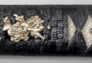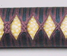 笹浪組糸は平打ちで、水面にさざなみの立つような目が矢羽根状に出ます、巻きは諸撮み巻です。